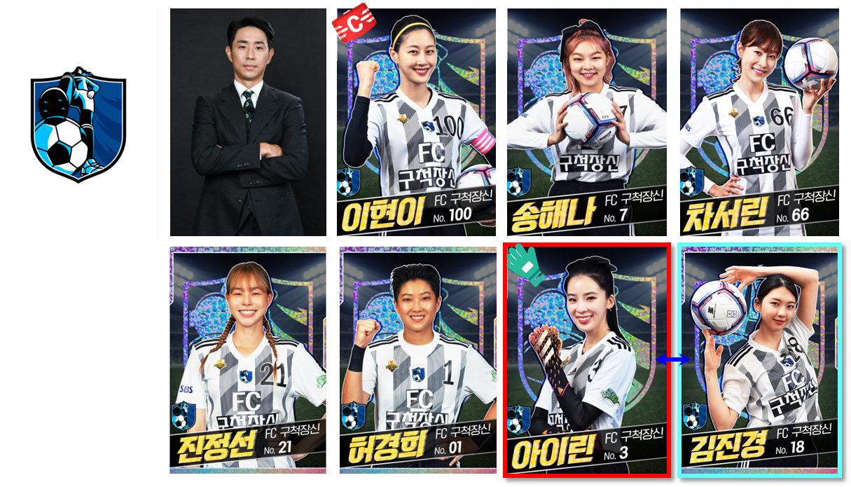 골키퍼 아이린이 탈락하고 시즌2까지 함께했던 김진경이 합류했다.