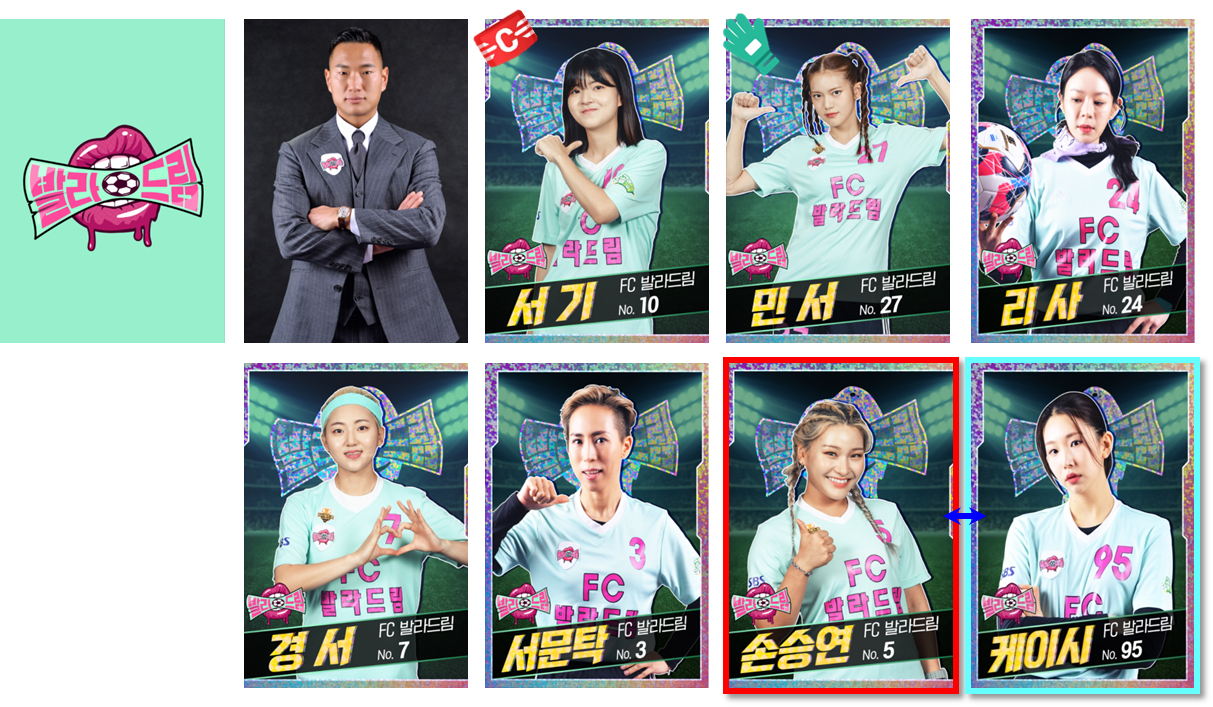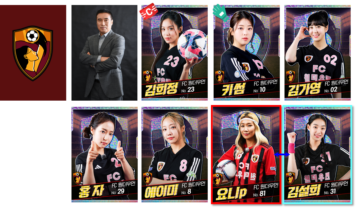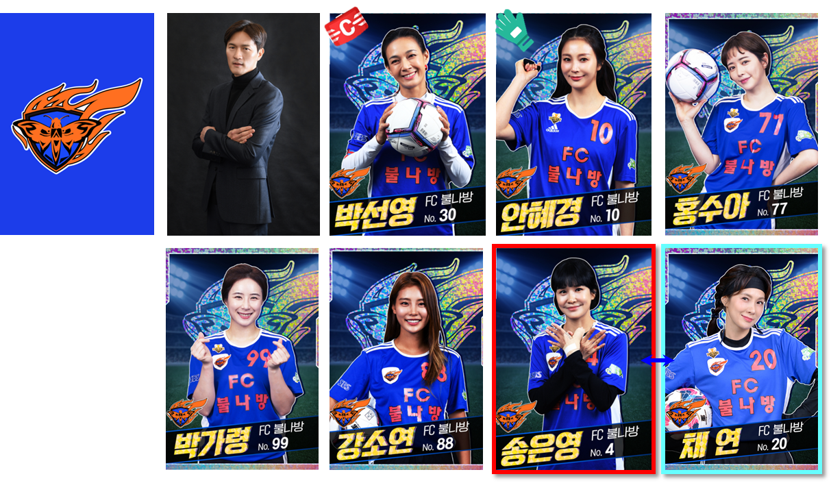 주장 박선영, 골키퍼 안혜경, 멤버 홍수아 박가령 강소연은 그대로, 송은영은 탈락하고 가수 채연이 대신 합류했다.