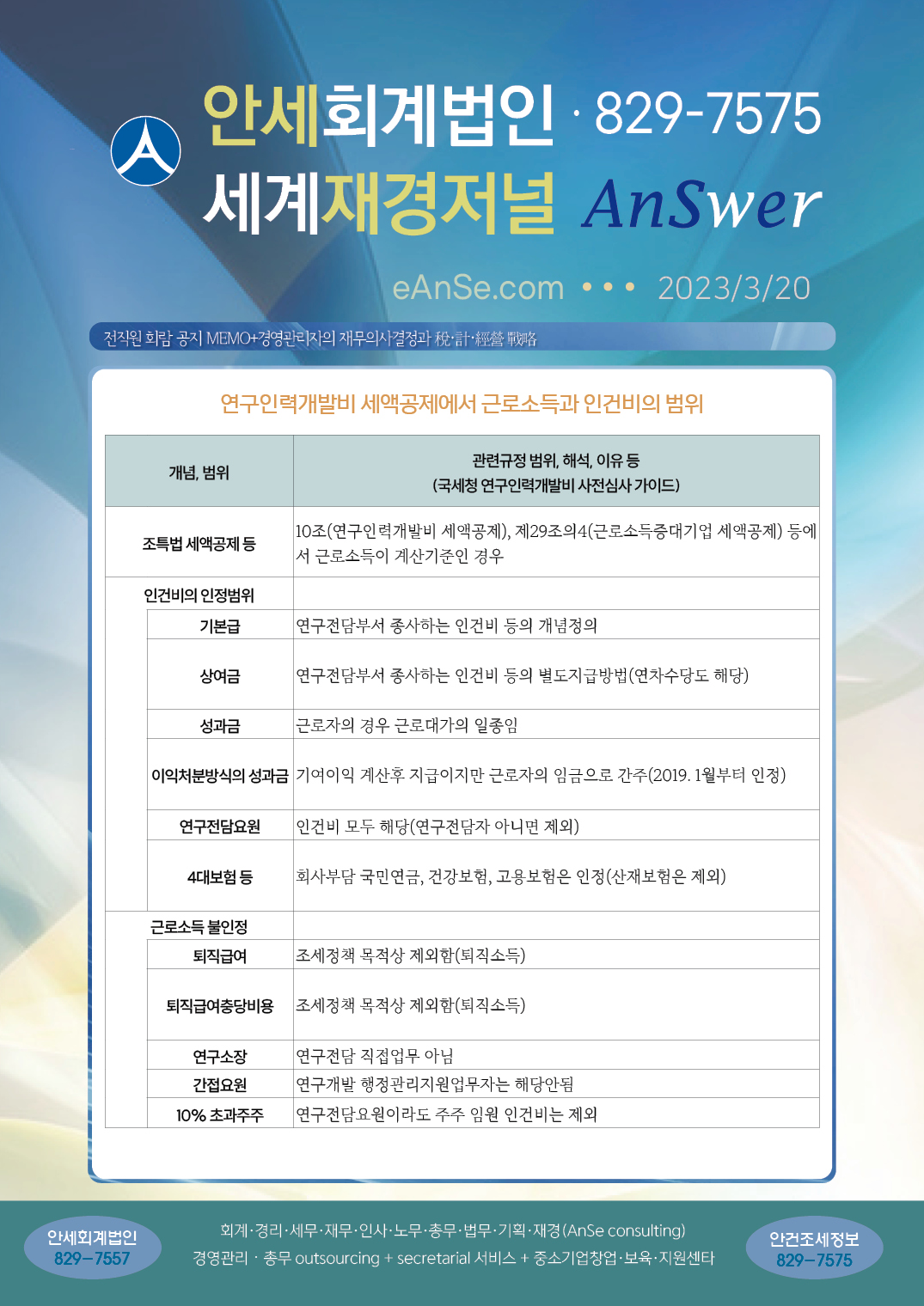 연구개발근로자 세액공제의 근로소득 및 연구비 범위
