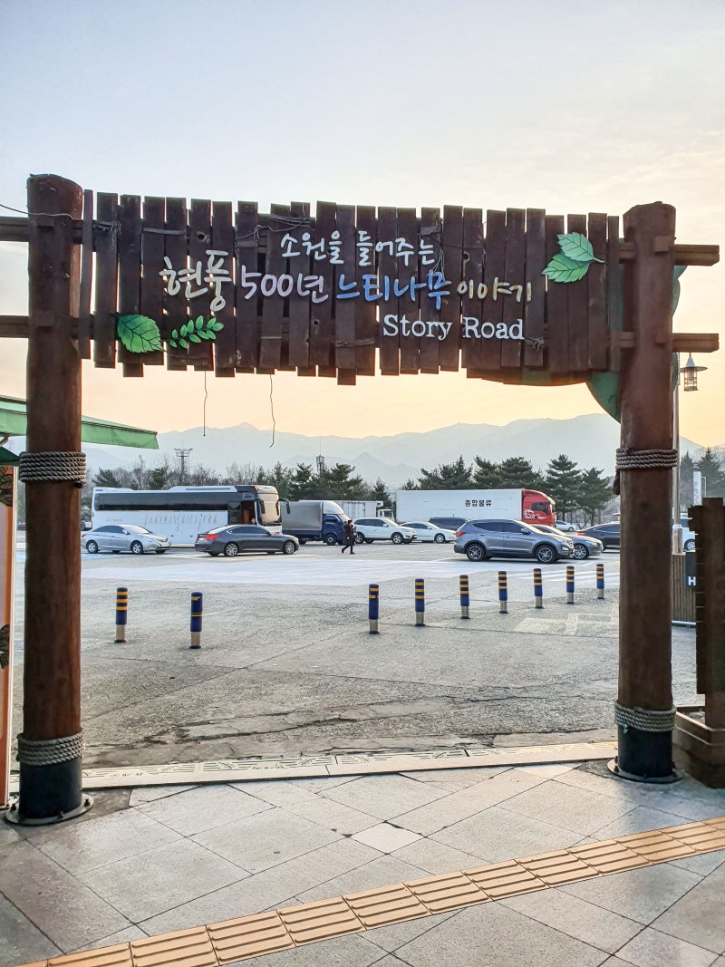 대구 달성군 현풍휴게소에 있는 500년 전 느티나무를 찾아본 현풍휴게소에서 500년 된 느티나무(높이 13m, 가슴높이 둘레 1.6m)는 소원을 들어주는 신성한 나무로 다음과 같은 이야기가 전해지고 있으며, 마을을 지켜주는 당산나무이면서 현풍휴게소와 고속도로를 지키는 수호신 역할을 하고 있다는 믿음이 있다고 하네요.1976년 구마고속도로 건설 당시 공사를 위해 철거 작업을 할 때 두 그루의 느티나무가 있었는데 한 그루를 눌러 버리고 지금의 500년 된 느티나무를 짓누르려 하자 불도저가 움직이지 않았고, 마을의 평안과 풍작을 기원하며 당산제를 지낼 때 갑자기 산에서 멧돼지 한 마리가 내려와 제사상을 뒤집어 놓고 음식을 먹고 즉사하고 말았다.